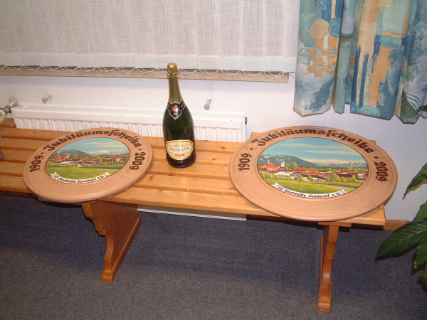 | Die Jubiläumsscheiben (die größere bleibt im Verein) |