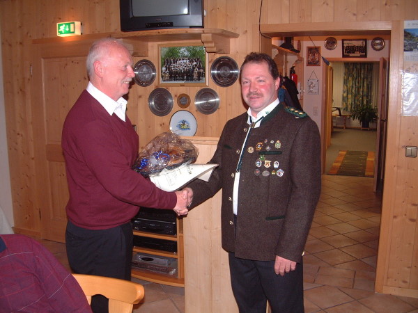| Bernhard Lechner überreicht den Meistpreis an 1. SM Albert Gaugler von der Dorflinde Surheim |