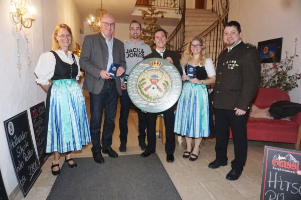 v.l.n.r.: 2. Schützenmeisterin Elisabeth Weibhauser, 1. Bürgermeister Bernhard Kern, Gemeindemeister Luftpistole Stefan Dietl, Gemeindekönig Robert Neuer,