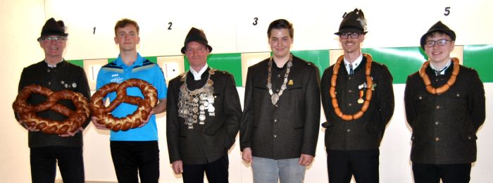Zur Jahreshauptversammlung im Schützenstüberl der „Blechhütte“ Saaldorf konnte Schützenmeister Michael Lausecker den zweiten Bürgermeister der Gemeinde Saaldorf-Surheim, Maximilian Lederer und Ehrenschützenmeister Johann Niederstrasser im Kreise der anwesenden Schützinnen und Schützen begrüßen. Nach dem Totengedenken wurden gemäß der Tagesordnung die Berichte vorgetragen. Zu Beginn informierte der Schützenmeister umfassend über den Ablauf des Umbaus im Schützenheim. Die Arbeiten rund um die Modernisierung und Umstellung auf elektronische Schießstände nahmen im Bericht eine zentrale Rolle ein. Trotz der widrigen Umstände während der Pandemie und Lieferschwierigkeiten einiger Teile konnte die Schießsaison fast pünktlich begonnen werden. Der Schützenmeister bedankte sich nochmals bei allen die hier tatkräftig zu Werke gingen, sowie bei allen Firmen und Spendern, ohne die eine Umstellung auf elektronische Stände nicht möglich gewesen wäre. Besonders der Gemeinde Saaldorf-Surheim, die den Verein finanziell unterstützte, galt der Dank des Schützenmeisters. Es folgten der Corona bedingt kurze Bericht des Sportwarts mit Ergebnissen aus den Rundenkämpfen. Dem Vortragen des Protokolles der letztjährigen Hauptversammlung durch den Schriftführer folgte der Kassenbericht des Kassiers. Kassenprüfer Max Niedermann bescheinigte eine ordnungsgemäße Kassenführung die im Anschluss durch die Versammlung mit der Entlastung der Vorstandschaft bestätigt wurde. Dann übergab 1. Schützenmeister Michael Lausecker das Wort an den zweiten Bürgermeister Maximilian Lederer. In seinem Grußwort richtete dieser seinen Dank an die Vorstandschaft und an die ehrenamtlichen Helfer der Saaldorfer Schützen zum gemeisterten Umbau, von dem er sich nach einer Besichtigung selbst ein Bild gemacht hatte. Er wünschte dem Verein gute sportliche Ergebnisse auf der neuen modernen Schießanlage. Nach dem letzten Tagesordnungspunkt Wünsche und Anträge ging es zur Siegerehrung vom End- und Königsschießen. Die Schützenkette des Jugendkönigs konnte Dominik Felber mit einem 203,53 Teiler in Empfang nehmen. Wurstkönig wurde mit einem 224,43 Teiler Andreas Prechtl, Joel Chestnut, wurde mit einem 389,95 Teiler Brezenkönig. Mit einem schönen 16,22 Teiler sicherte sich Andreas Sigl die Königswürde bei den Erwachsenen und erhielt vom Schützenmeister die Königskette überreicht. Ihm folgte mit einem 23,37 Teiler Martin Weibhauser als Zweitplatzierter und Alois Weibhauser mit einem 28,17 Teiler auf dem dritten Platz. Nach der Königsproklamation folgte die Bekanntgabe des Ergebnisses vom Endschießen. Mit einem hervorragenden 3,34 Teiler erzielte Georg Helminger das beste Blattl und bekam vom 1. Schützenmeister die Endscheibe überreicht. Die Schützen mit den nächstbesten vier Ergebnissen durften sich einen Sachpreis aussuchen. Die weiteren Platzierungen vom Endschießen: 2. Christine Wirrer 17,11 Teiler, 3. Kathrin Fuchs 24,18, 4. Robert Neuer 26,92, 5. Alois Weibhauser |