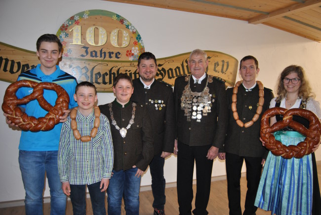 Der Höhepunkt des Abends war die Bekanntgabe der neuen Schützenkönige. Bei der Jugend wurde Luca Lausecker mit einem 106.04 Teiler wie im Vorjahr Jugendkönig. Matthias Langwieder sicherte sich mit einem 154.30 Teiler den Titel des Jugendwurstkönigs, Dominik Felber wurde mit einen 182.47 Teiler Brezenkönig beim Schützen-Nachwuchs.