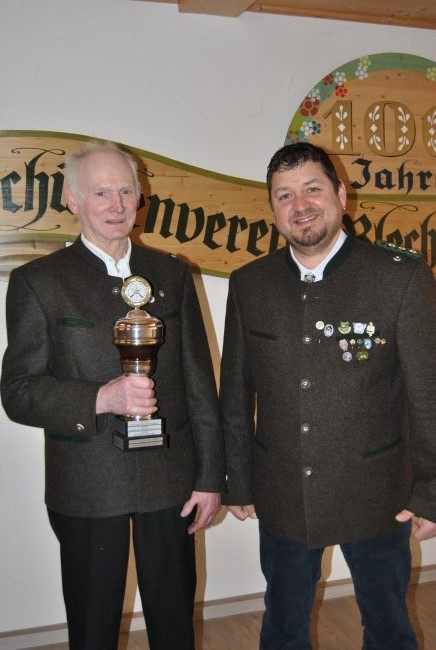 Beim Wanderpokal gab es bei den Erwachsenen und der Jugend jeweils für die drei besten Teiler Preise. Der Schütze mit dem besten Blattl wird mit einer Plakette auf dem Wanderpokal verewigt.