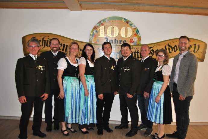 v.l.n.r.: 1. Schriftführer Anton Neuer, 2. Schriftführer Andreas Niederstrasser, 1. Sportwart Elisabeth Weibhauser, 2. Kassier Kathrin Fuchs, 1. Kassier Robert Neuer. 1. Schützenmeister Michael Lausecker, 2. Schützenmeister Andreas Sigl, 1. Jugendleiter Veronika Rückerl, |